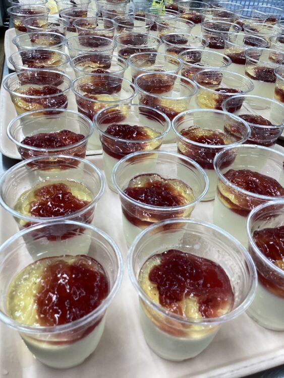 今回のおやつは、下の層にやさしい甘さの牛乳プリン、上の層にはさっぱりとしたぶどうゼリーを重ねた「2層のゼリー」です。