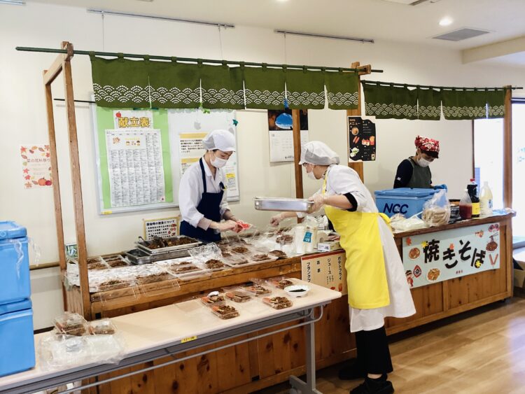 出店では焼きそば、フランクフルト、ポテトといった定番の美味しい屋台グルメを無料でご提供させていただきました。利用者様もご家族様も、お飲み物と一緒に、お祭り気分を味わいながら召し上がっていらっしゃいました。