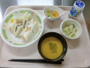 先日8月30日に特養では朝食レクを実施し、フルーツサンドを作りました。