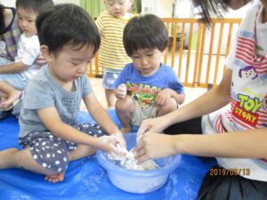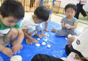 一緒に笑い合ったり、「お友達と一緒なら少しこねてみようかな?」と