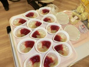 秋の味覚の一つである、巨峰とマスカットを使用した手作りぶどうゼリーを、利用者の皆様に召し上がっていただきました。
