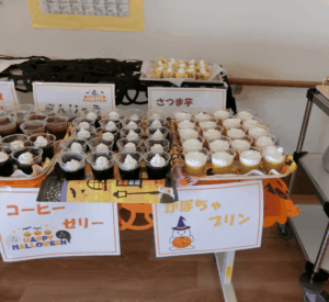 どのおやつも皆様おいしい、おいしいとありがたいお言葉をいただけました。中でも一番人気はクリームたっぷりの南瓜プリンでした。