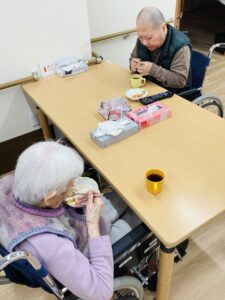 普段は食形態の違いから別メニューになることもありますが、皆さまが同じおやつを囲み、